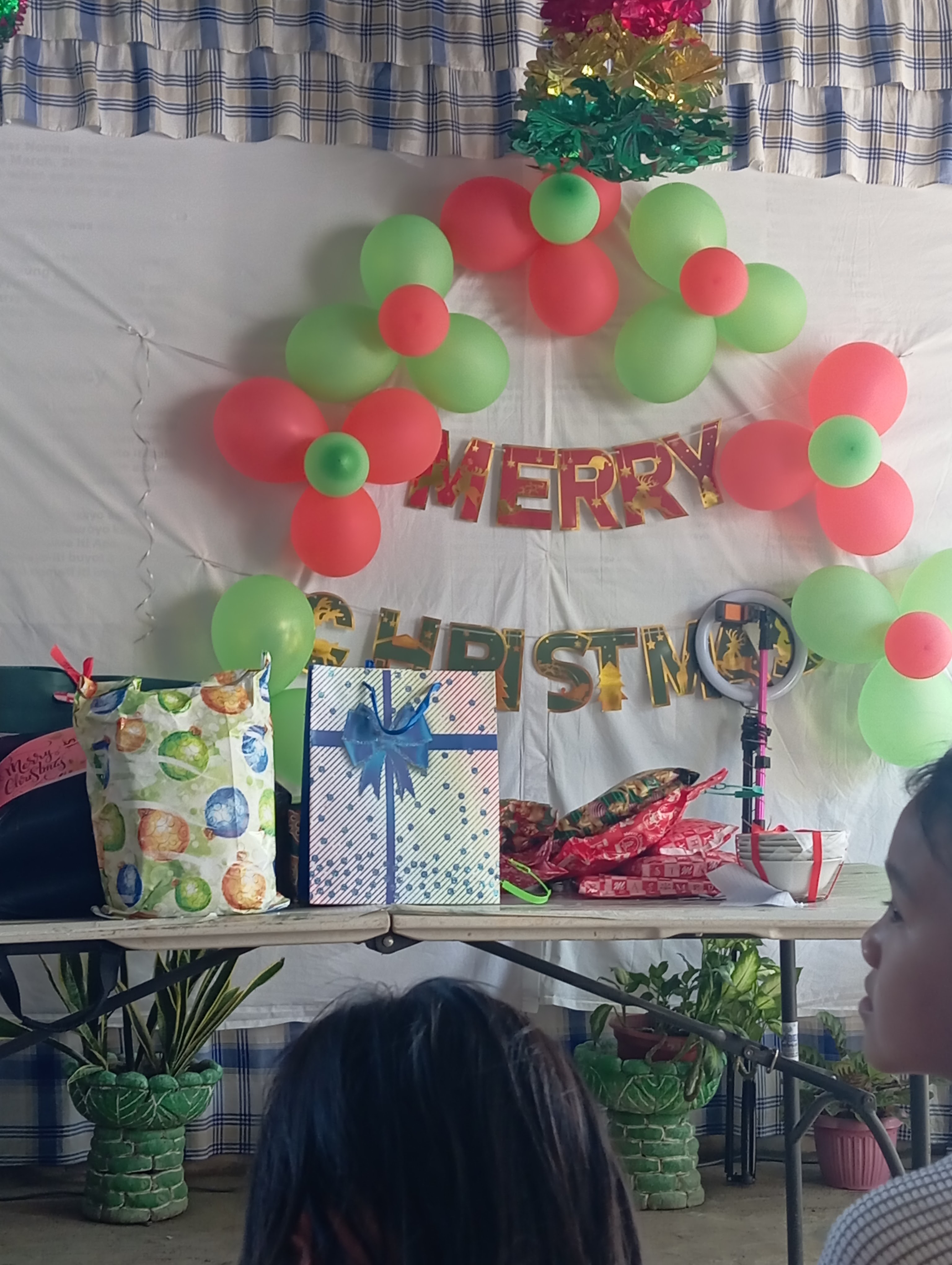 In December 21, 2024 we celebrate the christmas early with the Well-Spring of Faith for we have time to spent our vacation with our family. Our Pastor & Pastora choose to celebrate christmas here rather than in America. The mothers in our church bring their gifts for exchange gift. Kids are very happy to see that there are a lot of things in the table that are being wrapped and ready to receive.